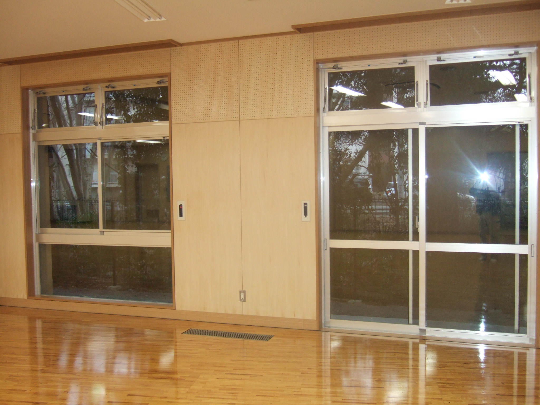 写真は、排煙窓、引き違い窓、はめ殺し(FIX)に飛散防止フィルム(シート)を施工いたしました。施工完了後に撮影させていただきましが、殆ど見た目は普通のガラスと変わりませんので、ガラスフィルム(シート)施工後に透明感が変わってしまうのではとご心配のお客様はご安心ください。