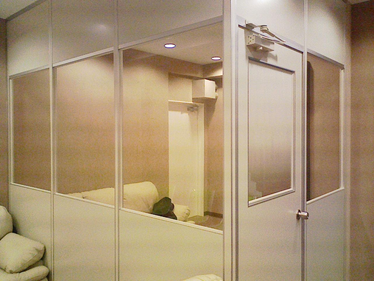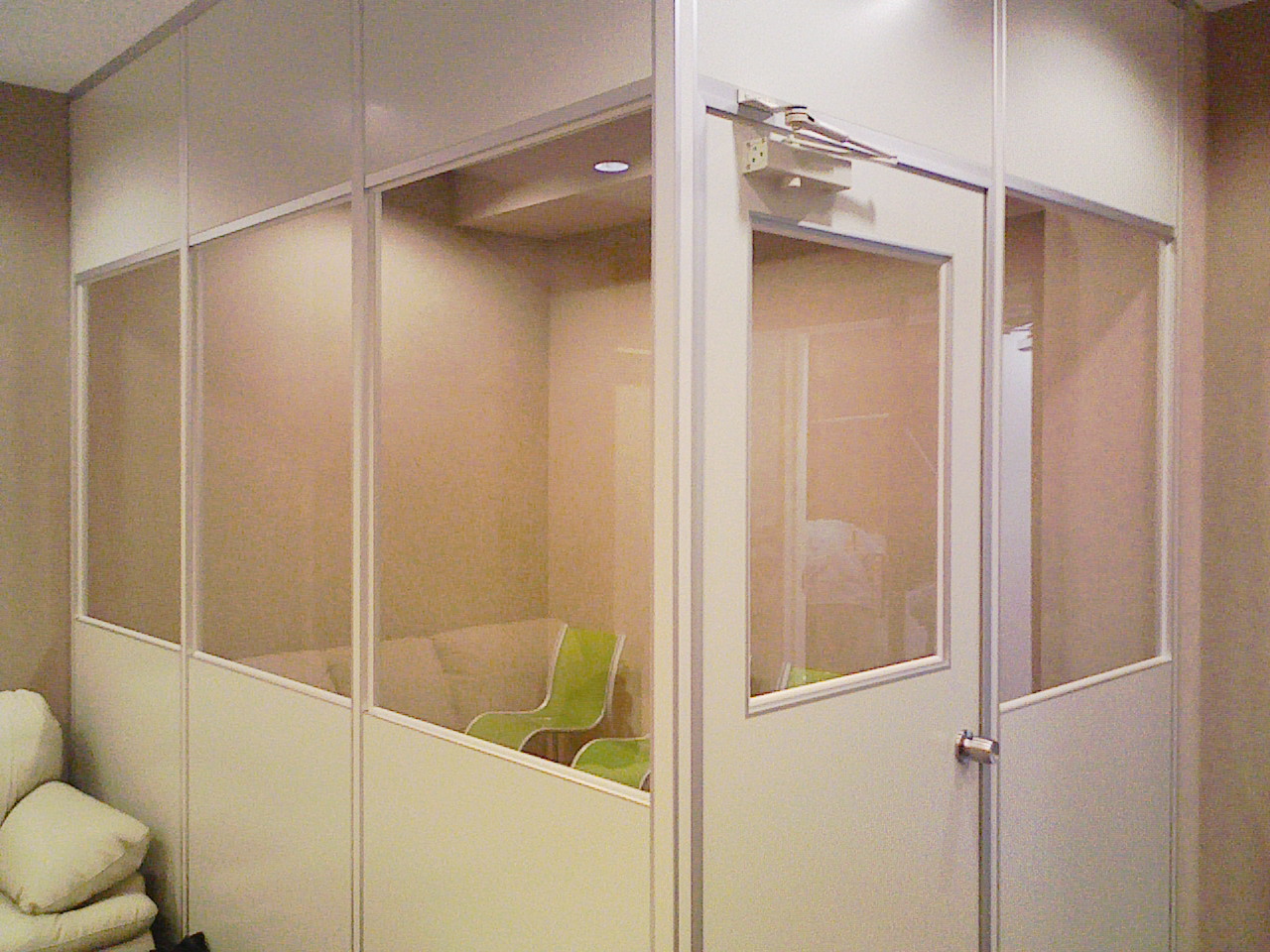 喫煙ルームのパーテーションなので、喫煙ルーム側ではなく反対側に
