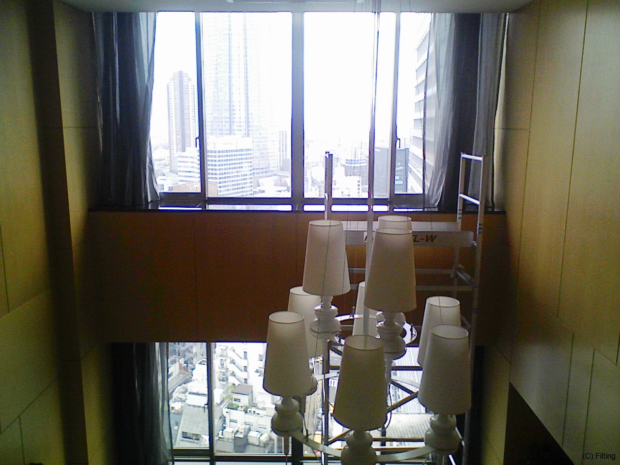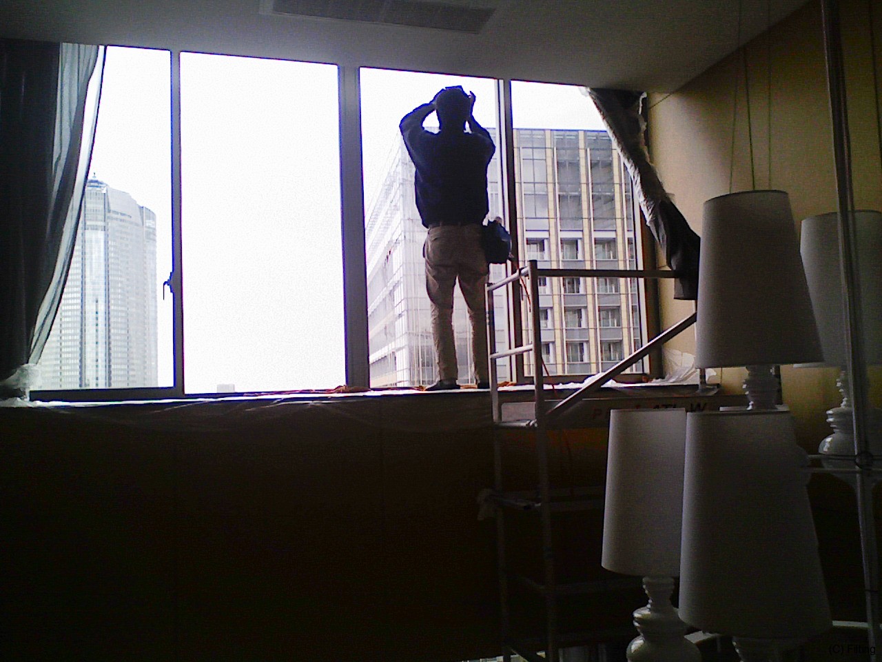 -ガラスフィルム, ローリング, 吹き抜け, 施工, 足場, 高所