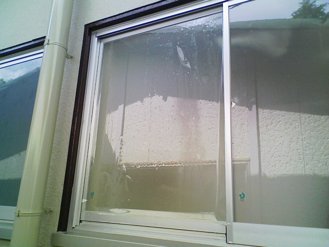 した硝子には、外側から施工させて頂きます。