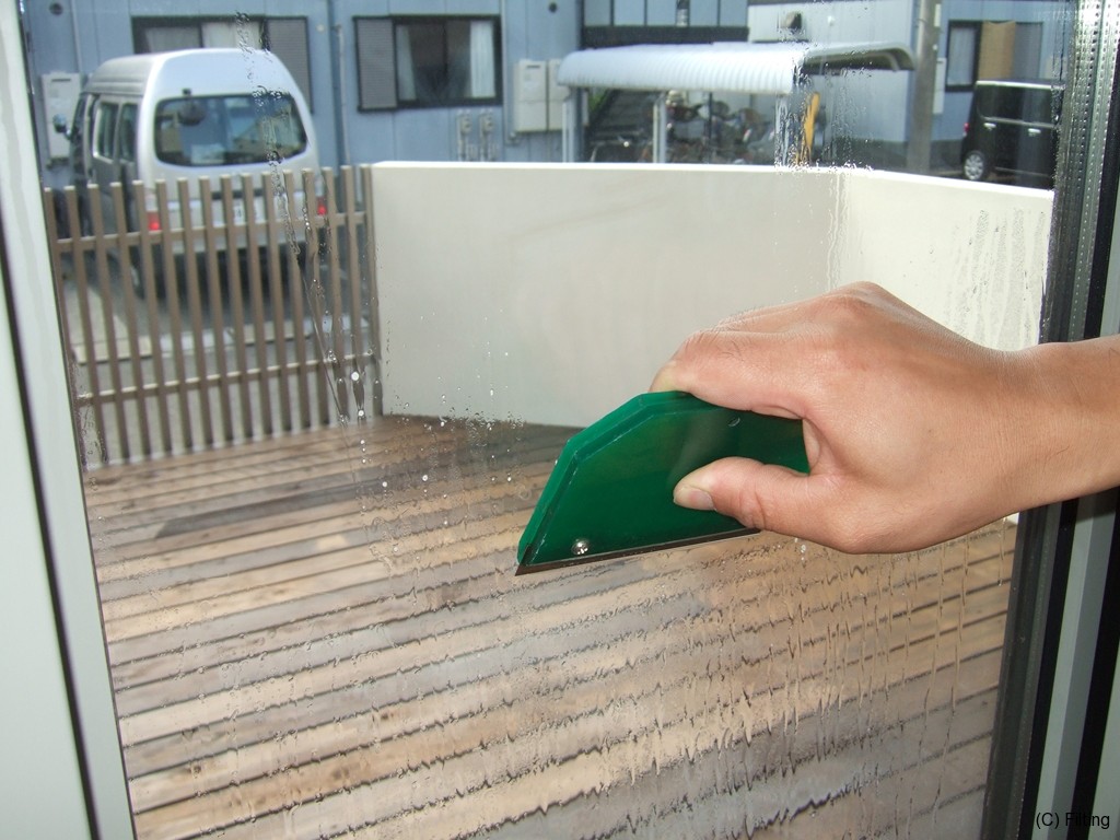 ガラスフィルム施工前には、しっかりとスクレパーにて清掃してから貼り付け作業をさせて頂きます。