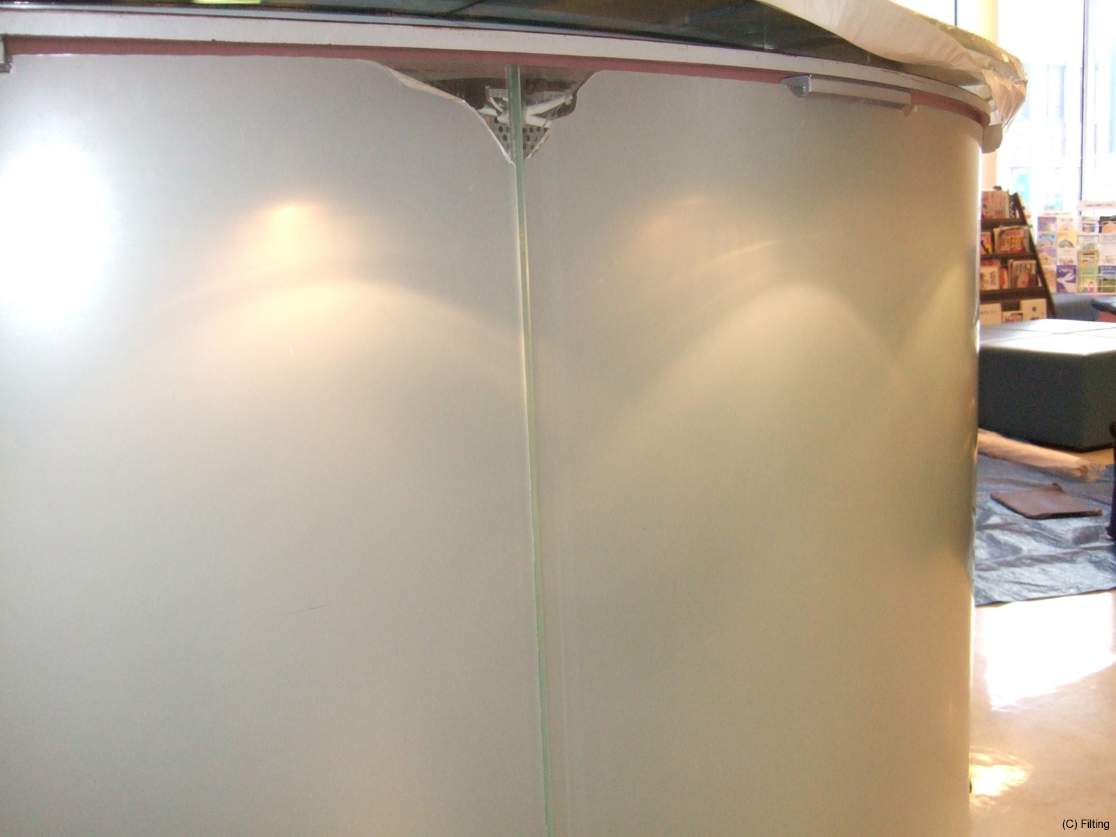 ガラスとガラスの繋ぎ部分のところが少しはみ出しており、