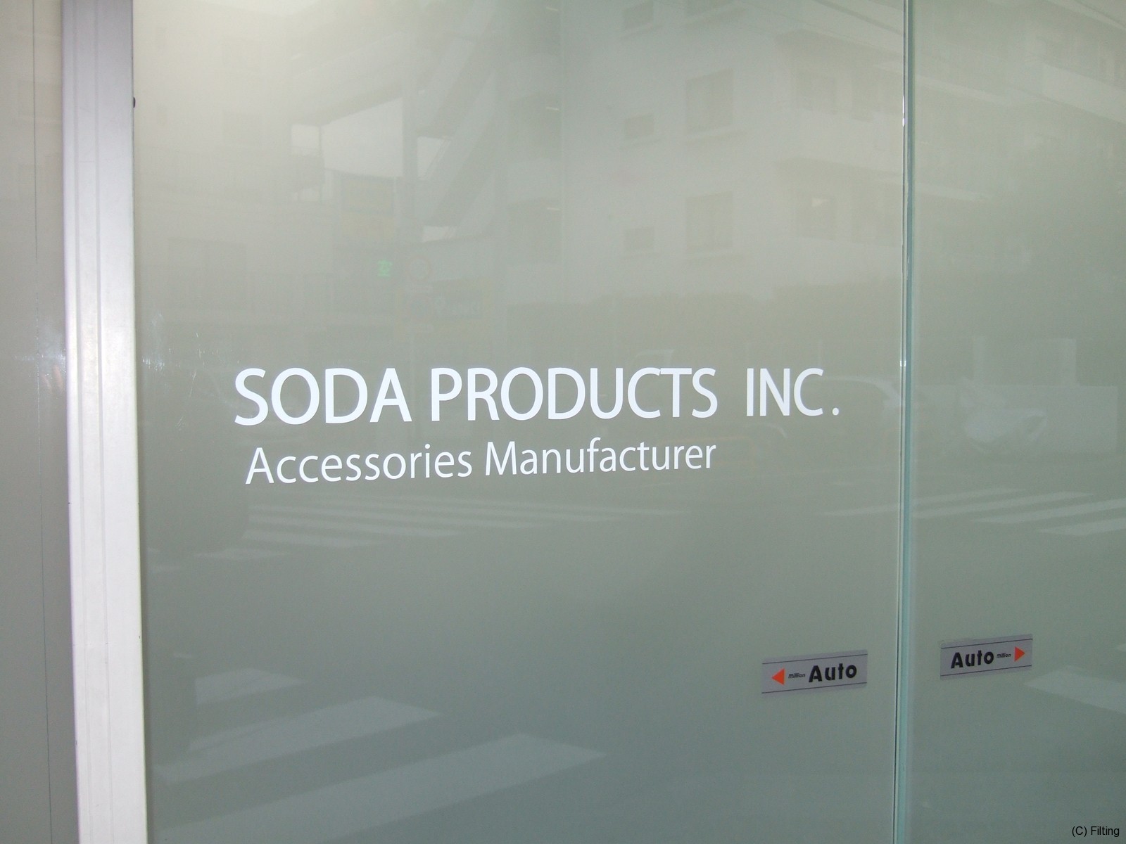 目隠しフィルムを施工後、社名の切り文字を貼り付けさせて頂きました。