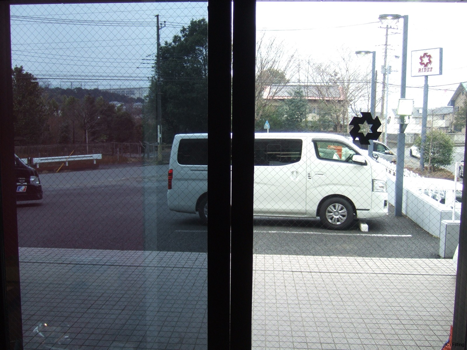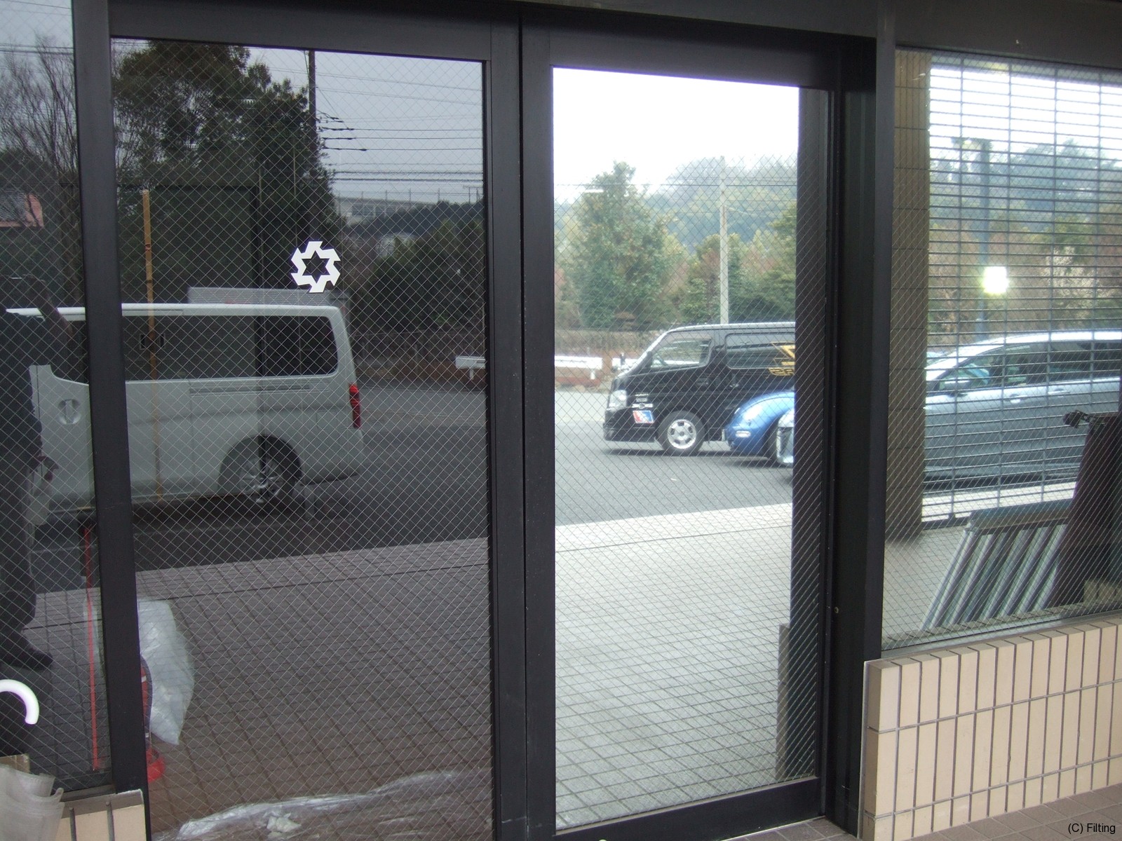 ガラスは網入りガラスなので、マジックミラータイプを貼りますと熱割れの可能性がございます。