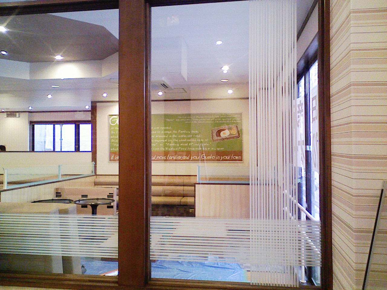 装飾用ストライプのガラスフィルム【アルパ(SH2FGAP)】施工