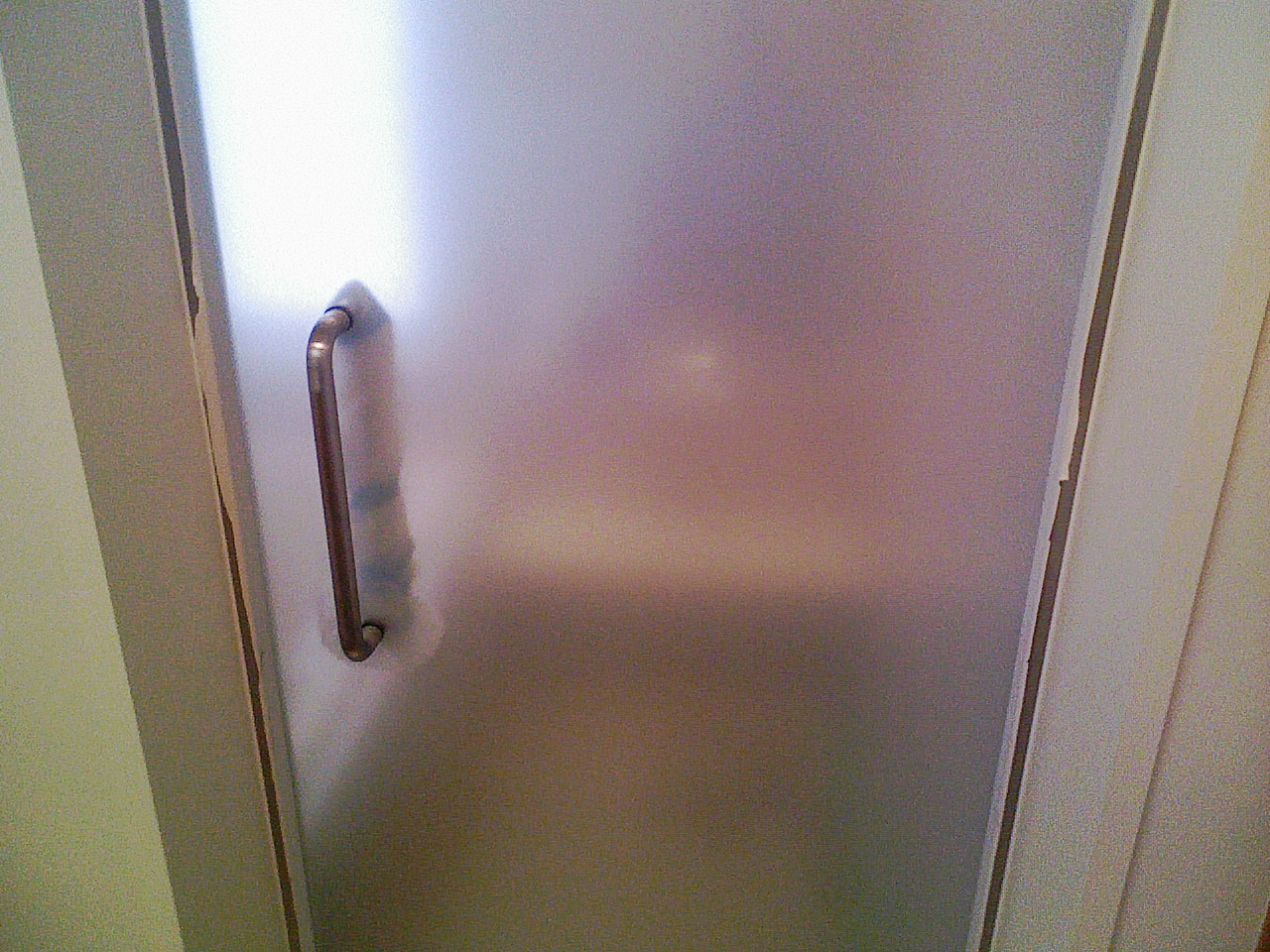 浴室のドアに目隠し用のウィンドウフィルムを貼りつける事により、