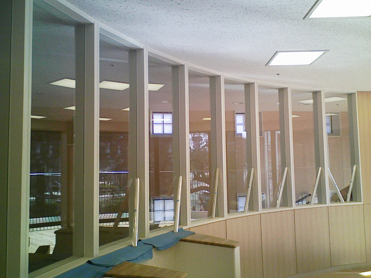 室内のガラスですが、割れた時の安全の為に飛散防止フィルムを施工。