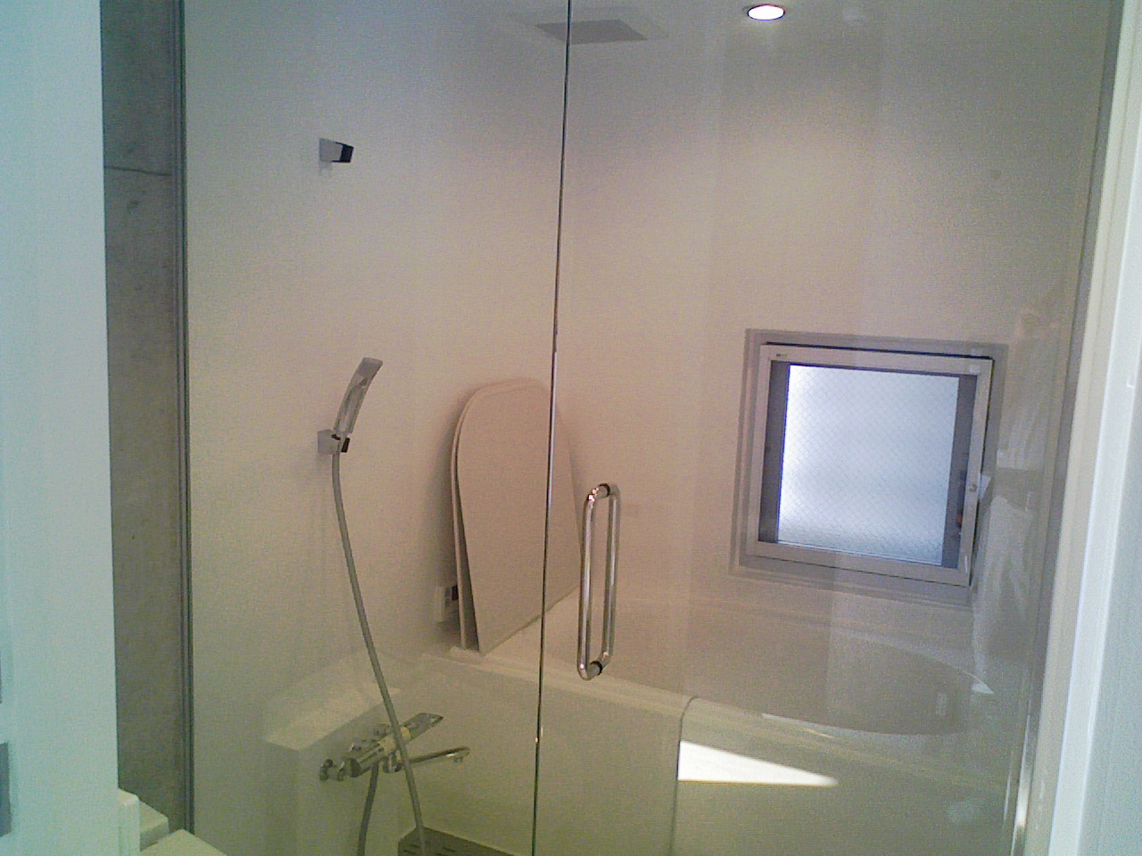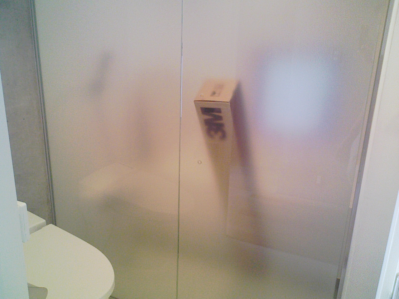 浴室の透明ガラスに、目隠し用のガラスフィルム【マットクリスタル・アイ】