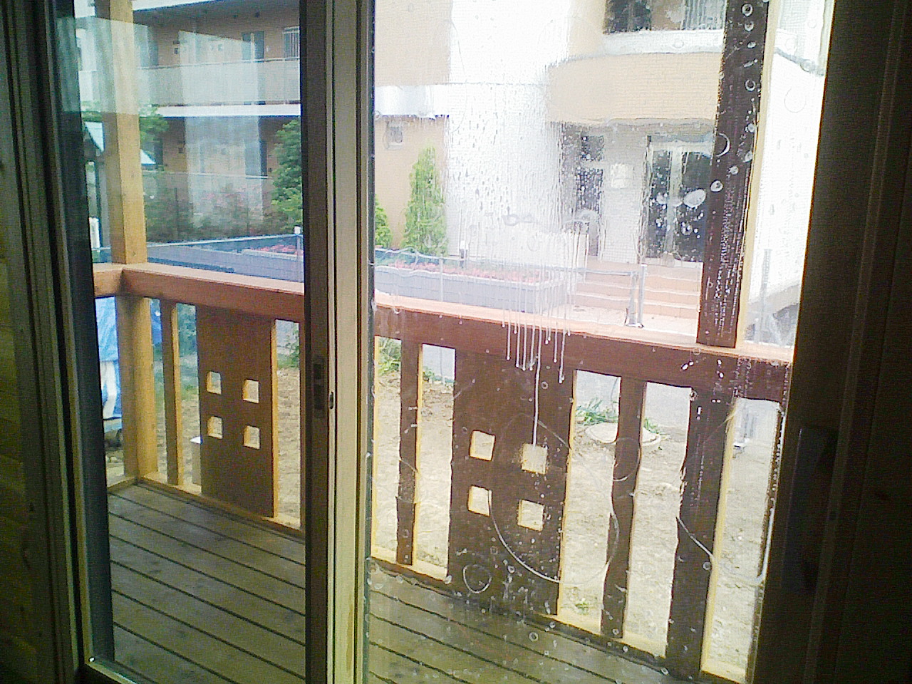 右側ガラスは貼りつけ途中です。水と空気が沢山残っておりますが、しっかりと水抜き作業させていただき、仕上げます。