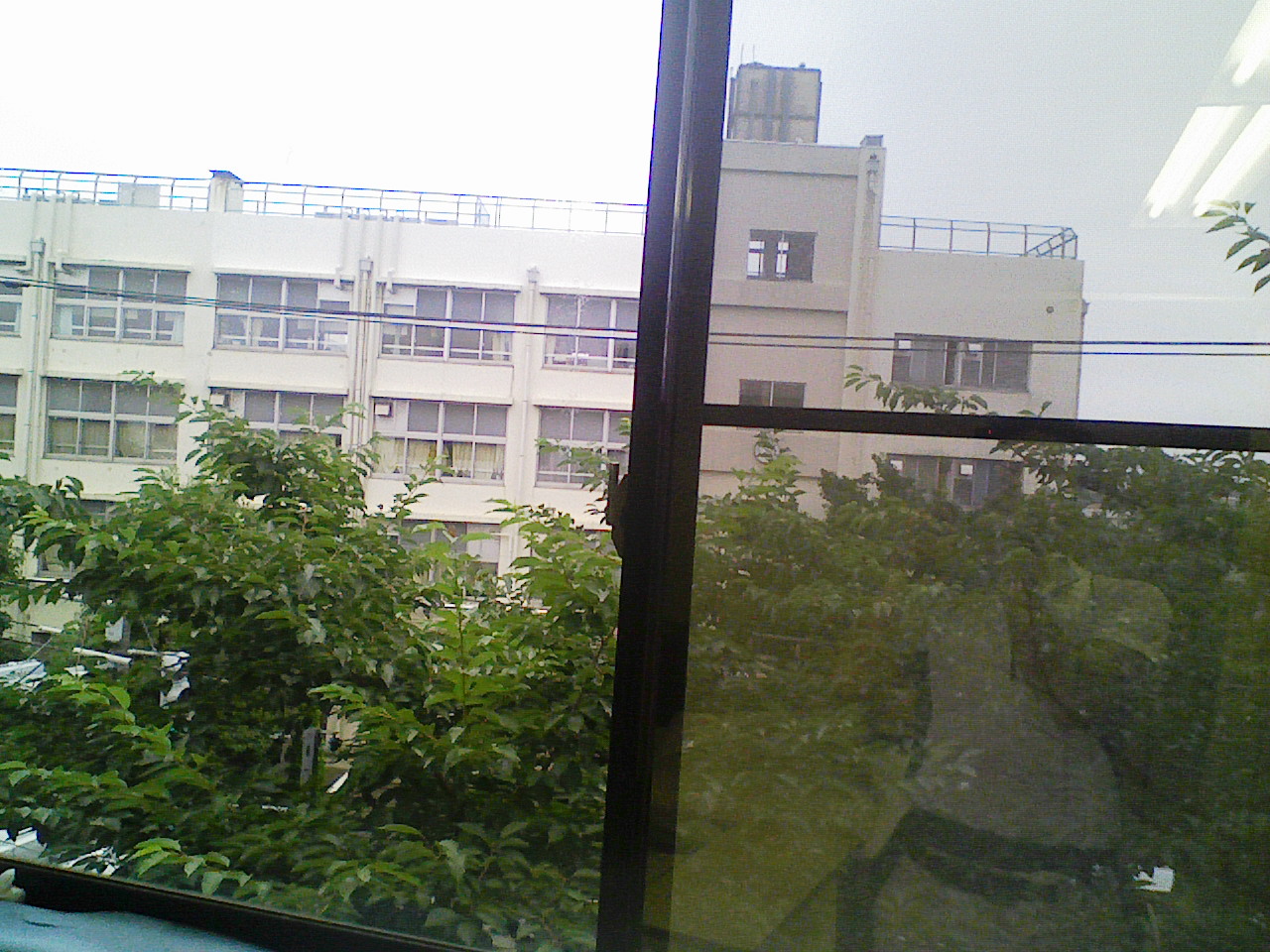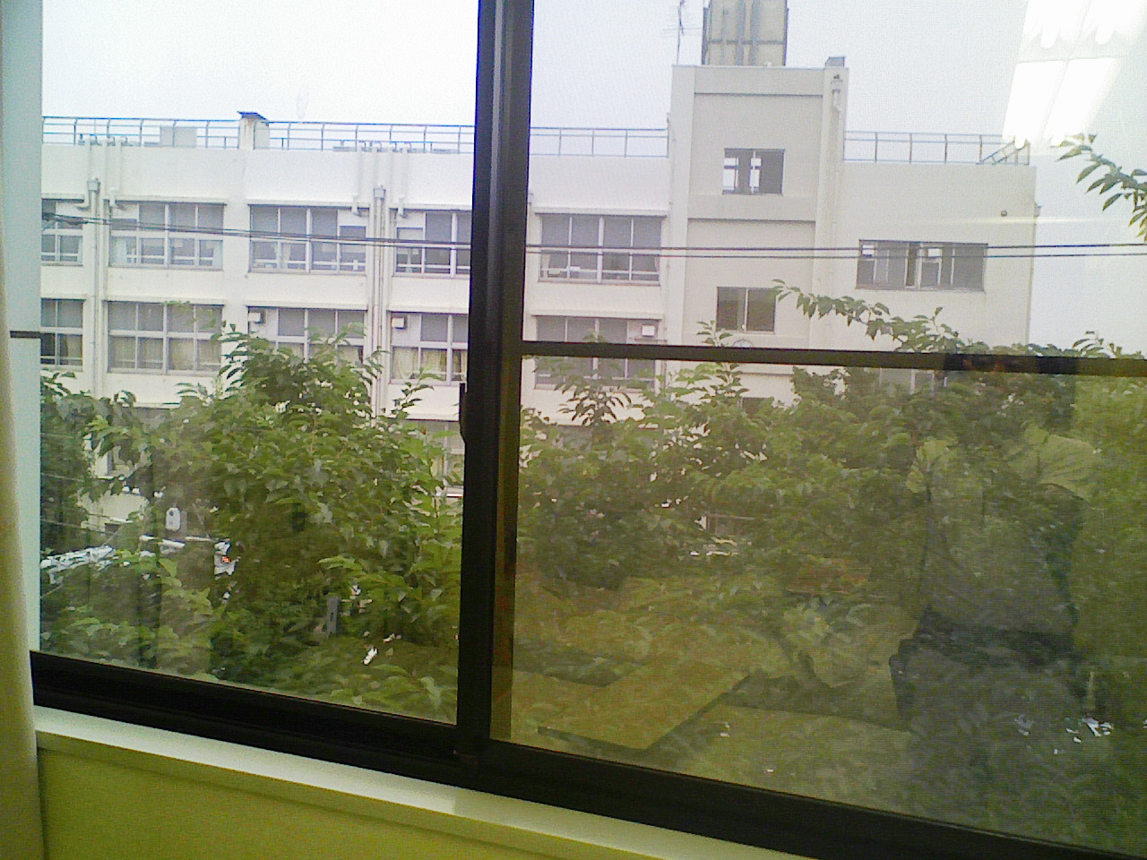 貼りつけ完了です。外が暗いので、両ガラスともちょっと反射してますね。