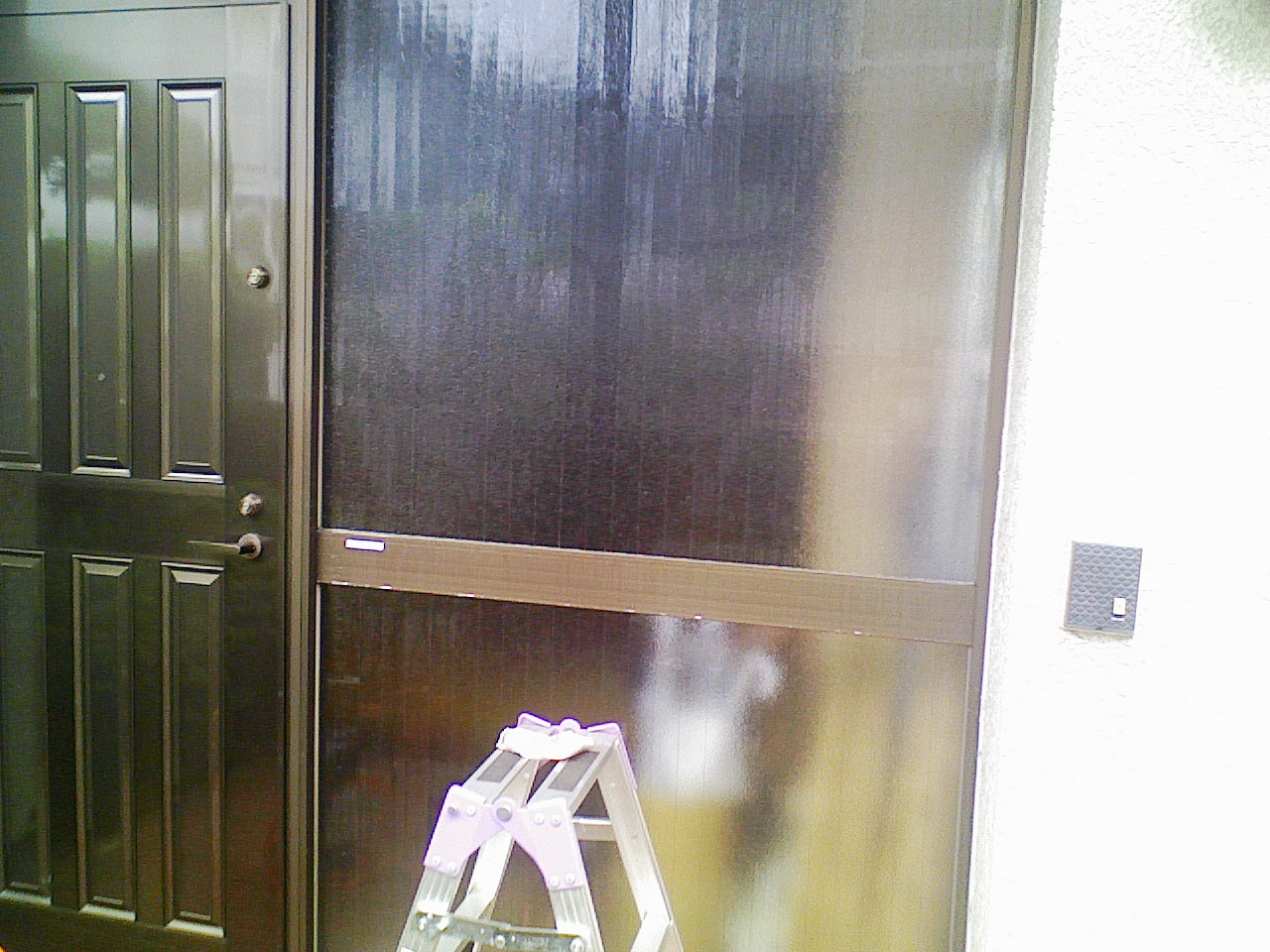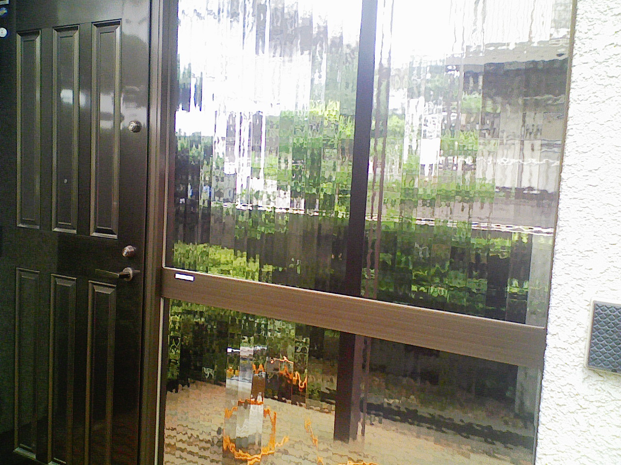 型板ガラスなので、外側からの貼りつけです。