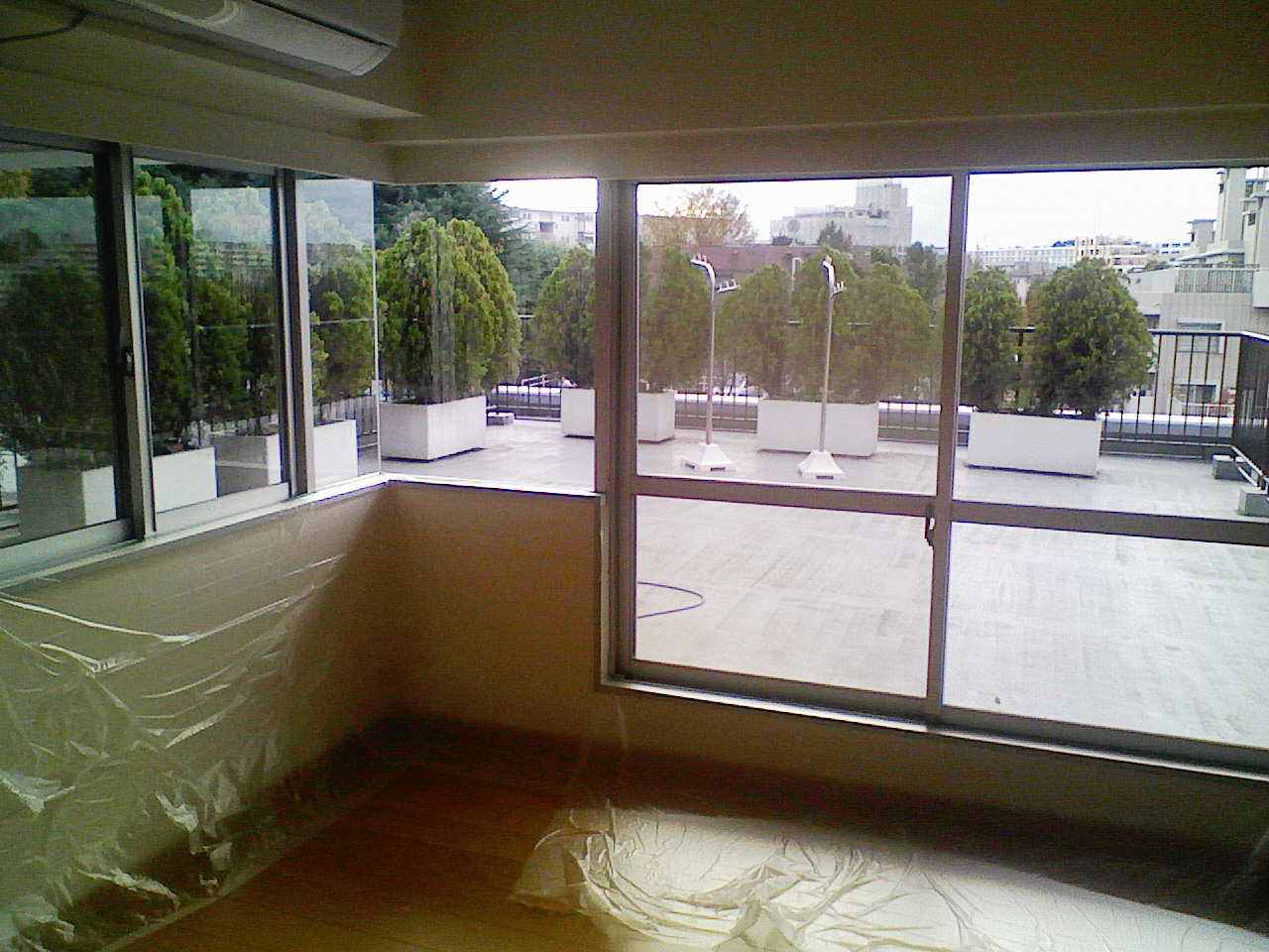 マンションのガラスに、暑さ対策のフィルムや、目隠しのフィルム、