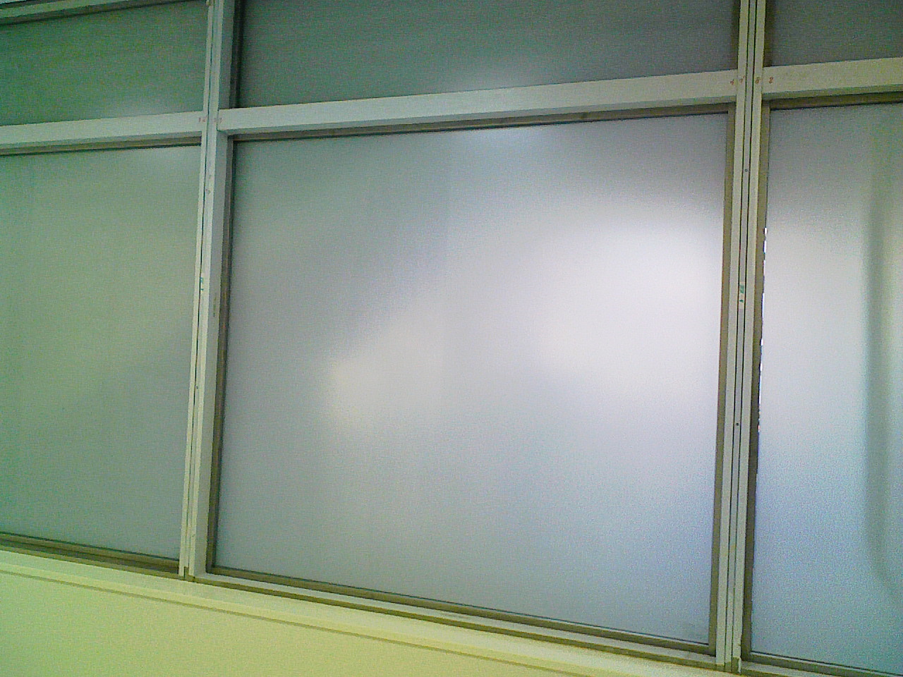 目隠し装飾用のガラスフィルム【ミルキーホワイト】施工