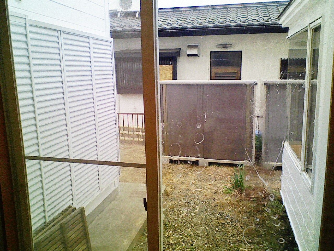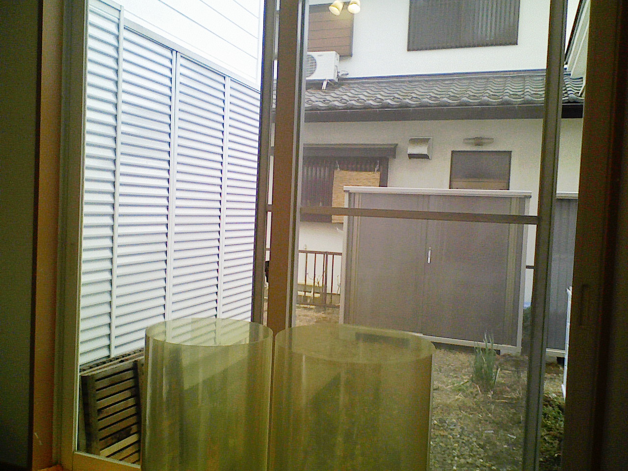 右側のガラスに貼りつけ途中です。この後、しっかりと仕上げさせていただきます。左側は貼りつけ完了です。