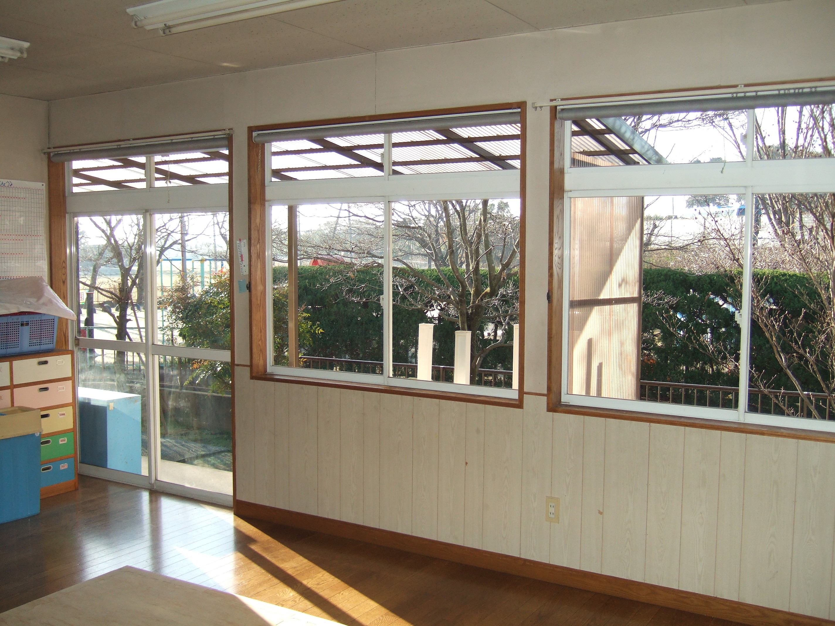 保育園は、ガラスが多数ありますね。
