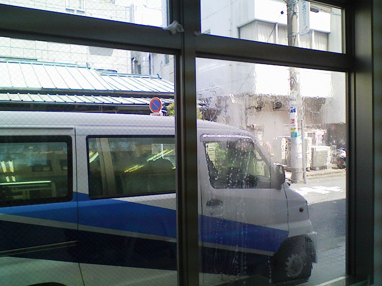 網入りガラスに地震対策の飛散防止フィルム【SH2CLAR】施工