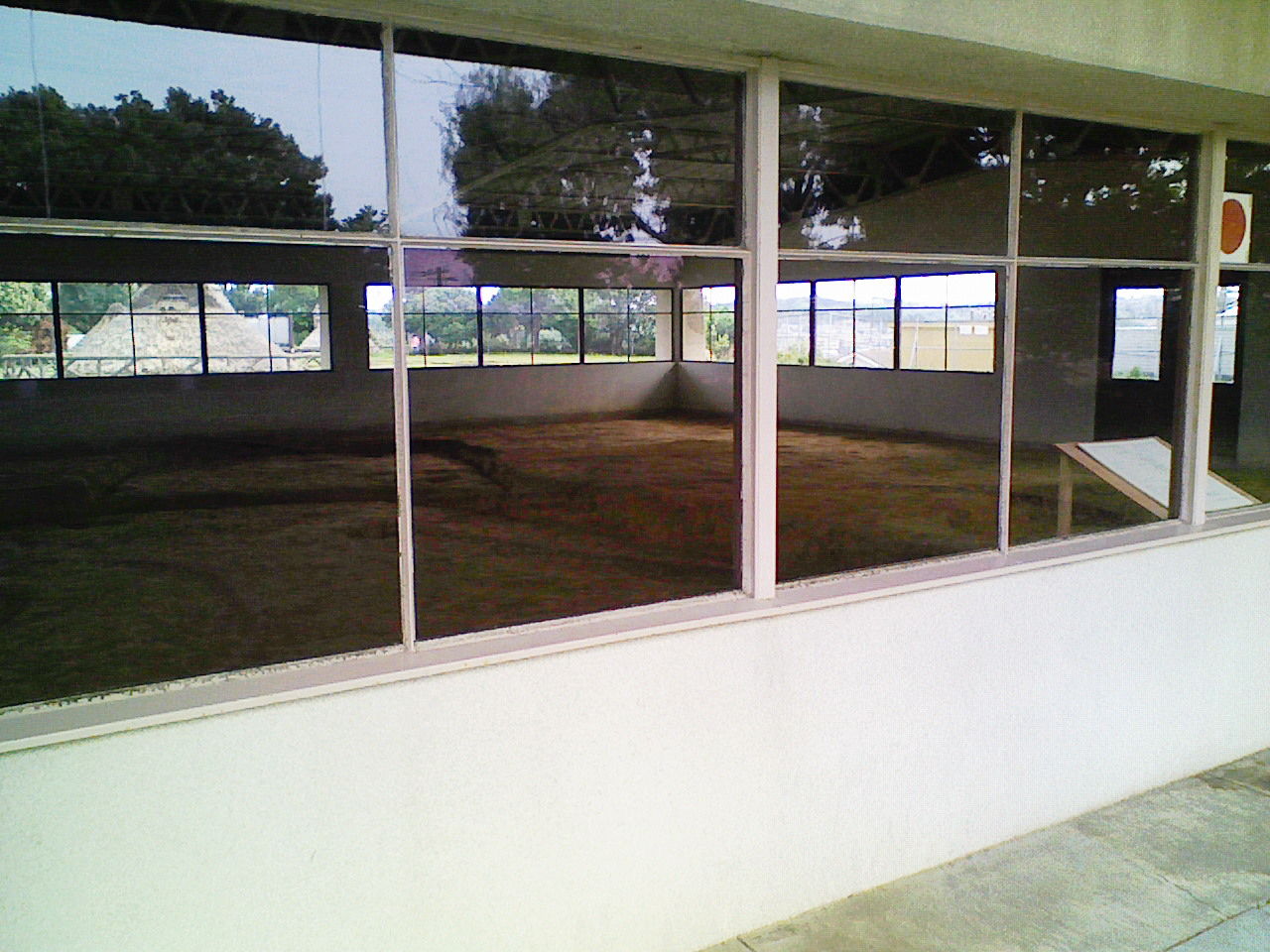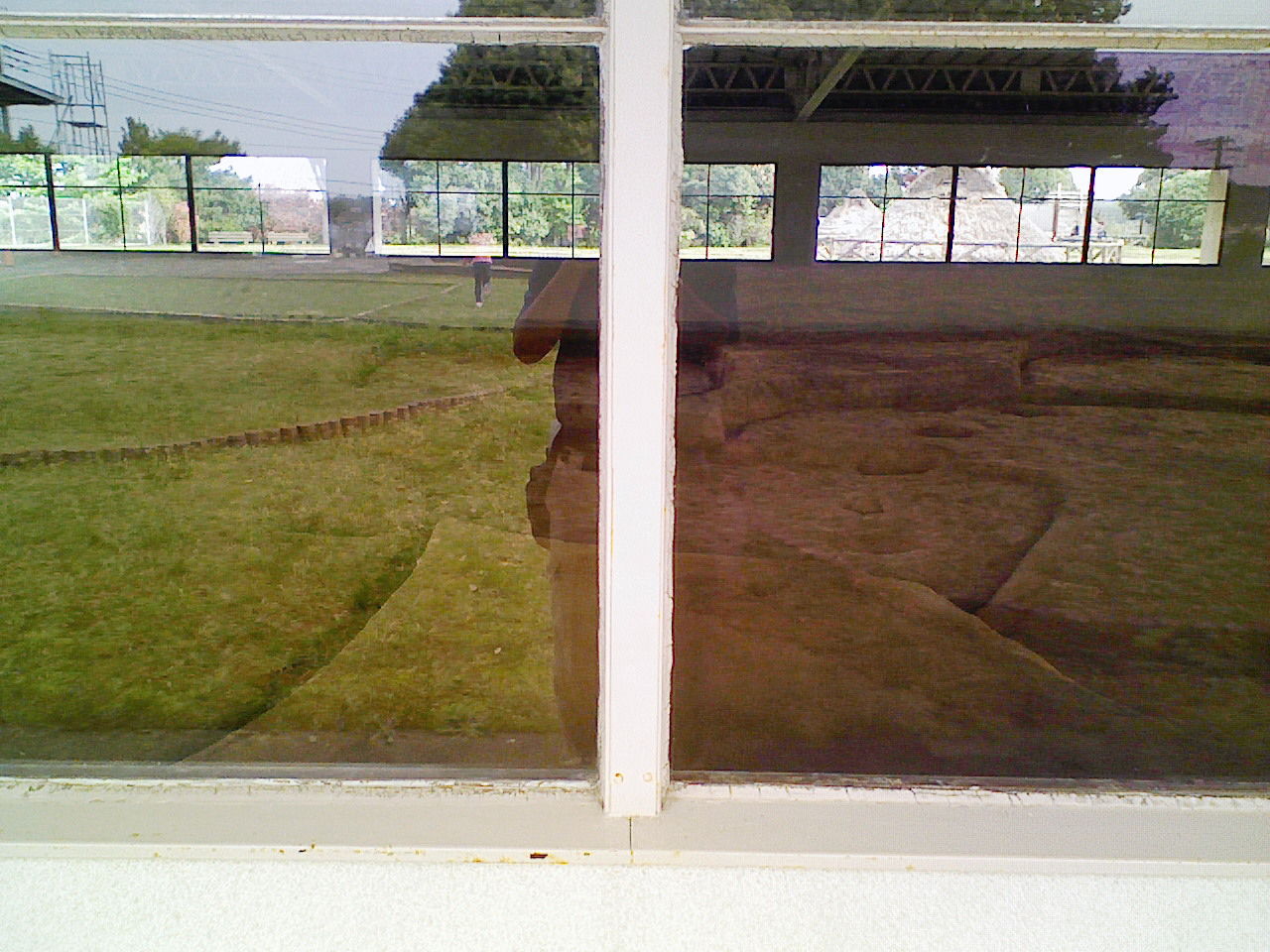 低反射タイプのガラスフィルム施工前です。外の芝生が写りこんでますね。