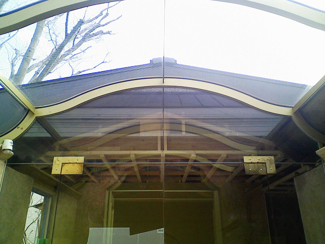 異形ガラスに目隠しフィルムの【グラッセ】施工