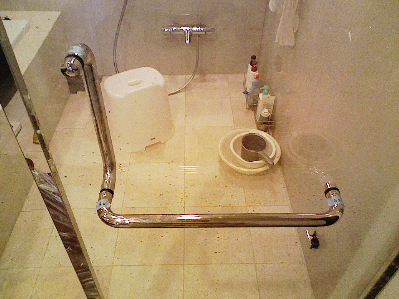 既存の浴室ガラスは、施工時に透明な飛散防止フィルムが貼っている事が、