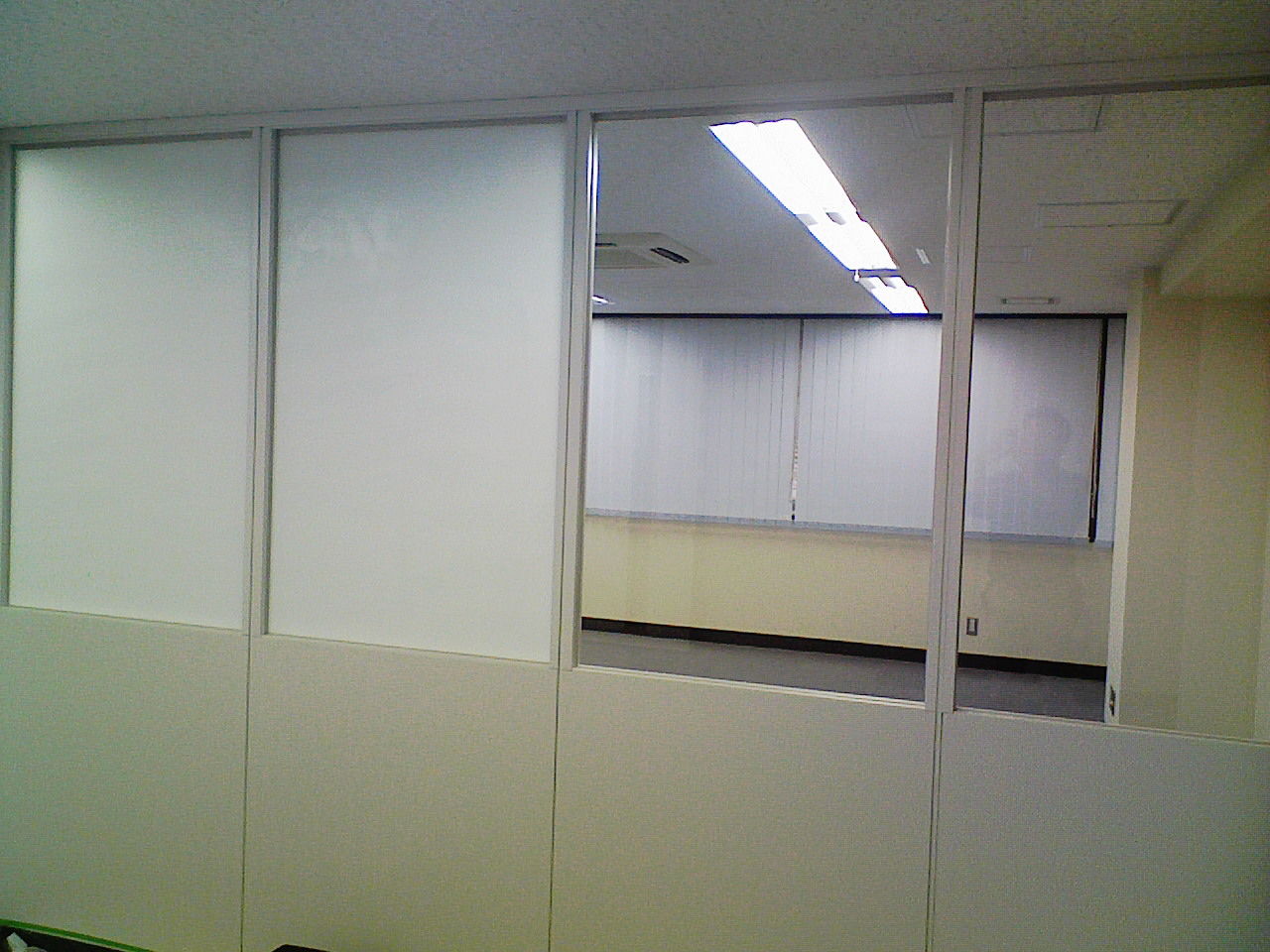 パーテーションのガラスに目隠しフィルムの【ミルキーミルキー】施工