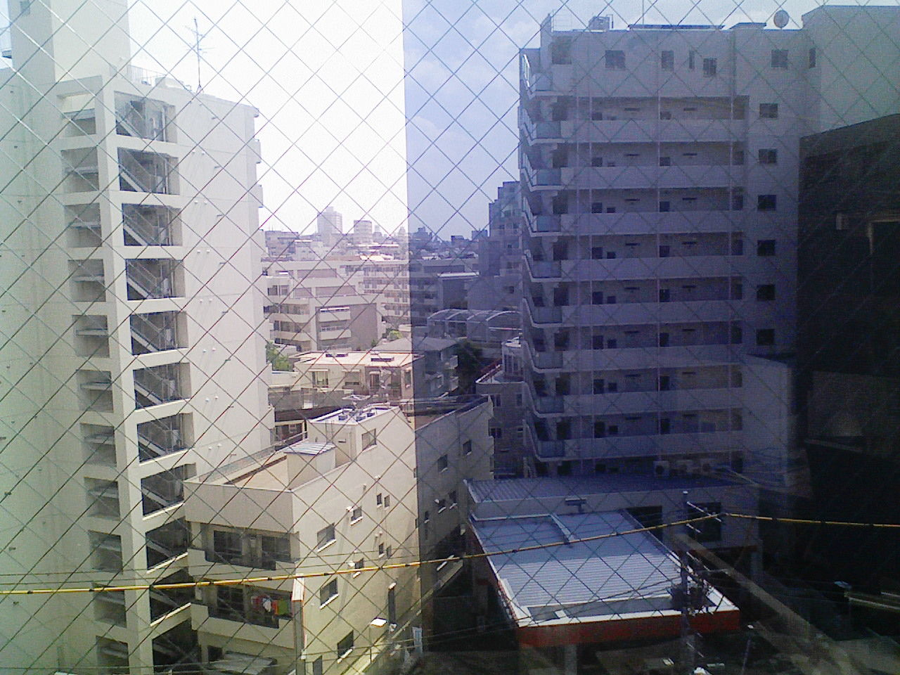網入りガラスに遮熱省エネタイプのガラスフィルム【アンバー35】施工施工
