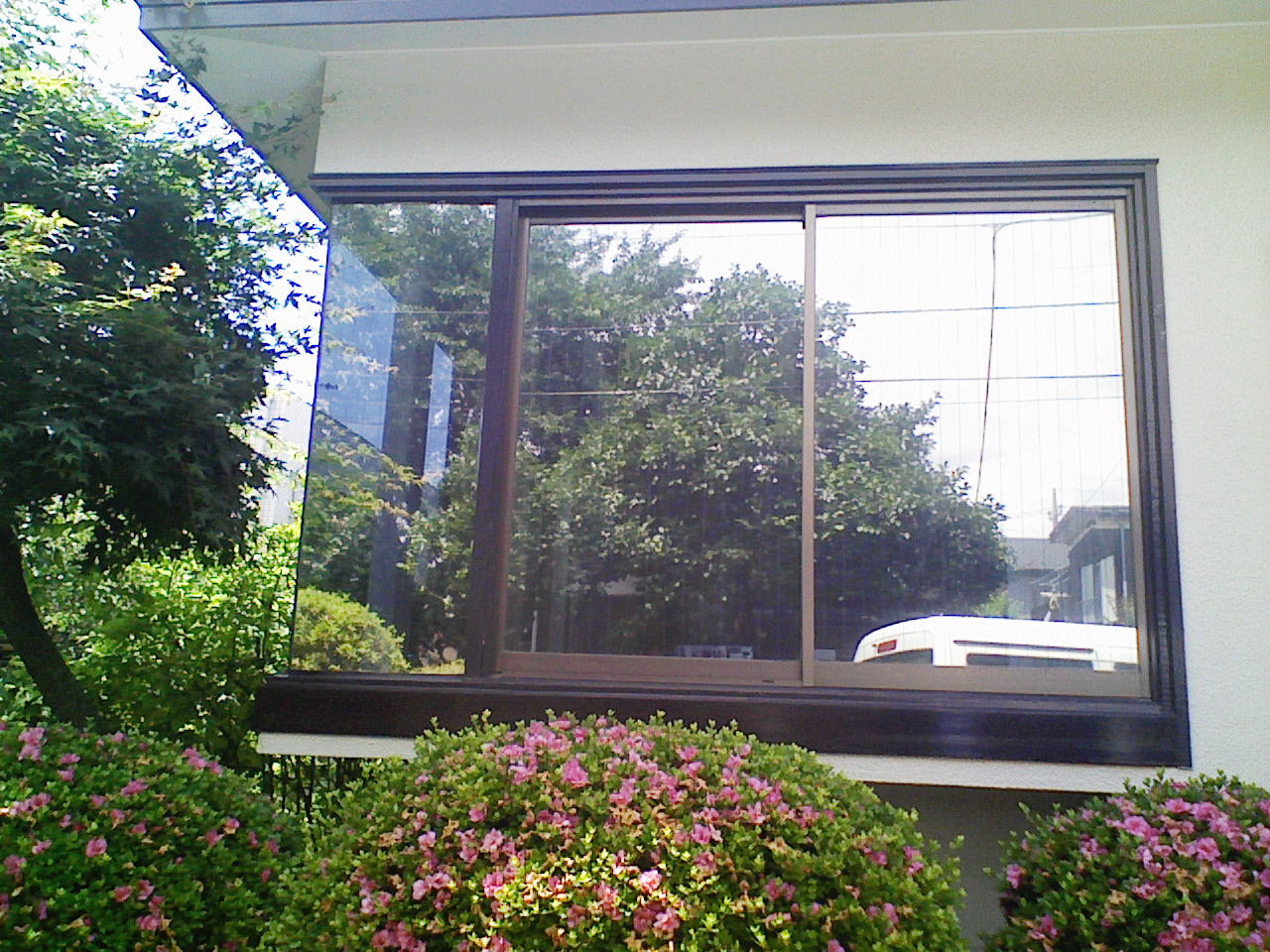 しかし、夜は逆転してしまい室内の照明を点けますと、室内側が鏡のようになり、