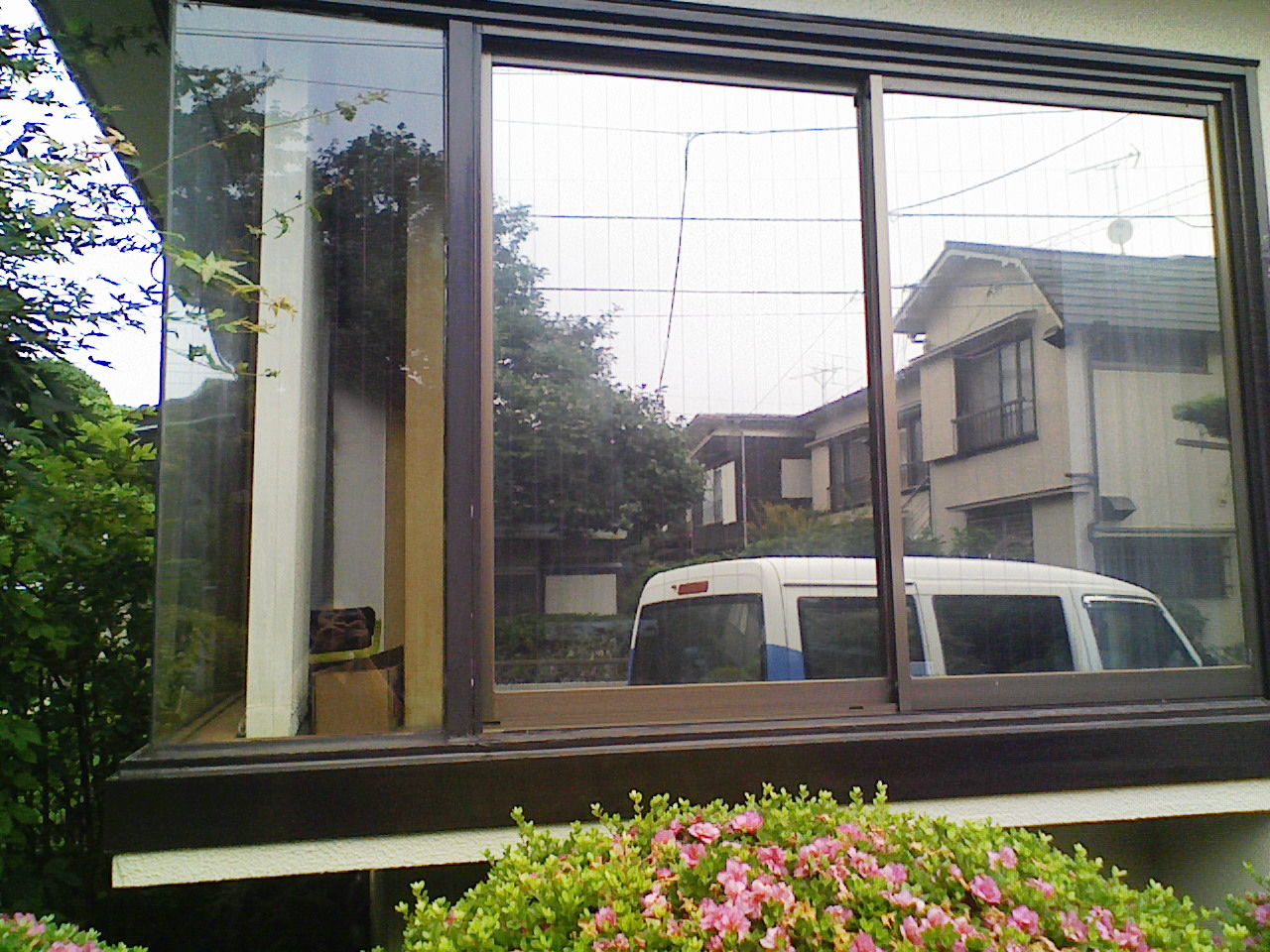 室内の方が暗く、室外が明るい状態ですと外から反射して中が見えにくくなります。